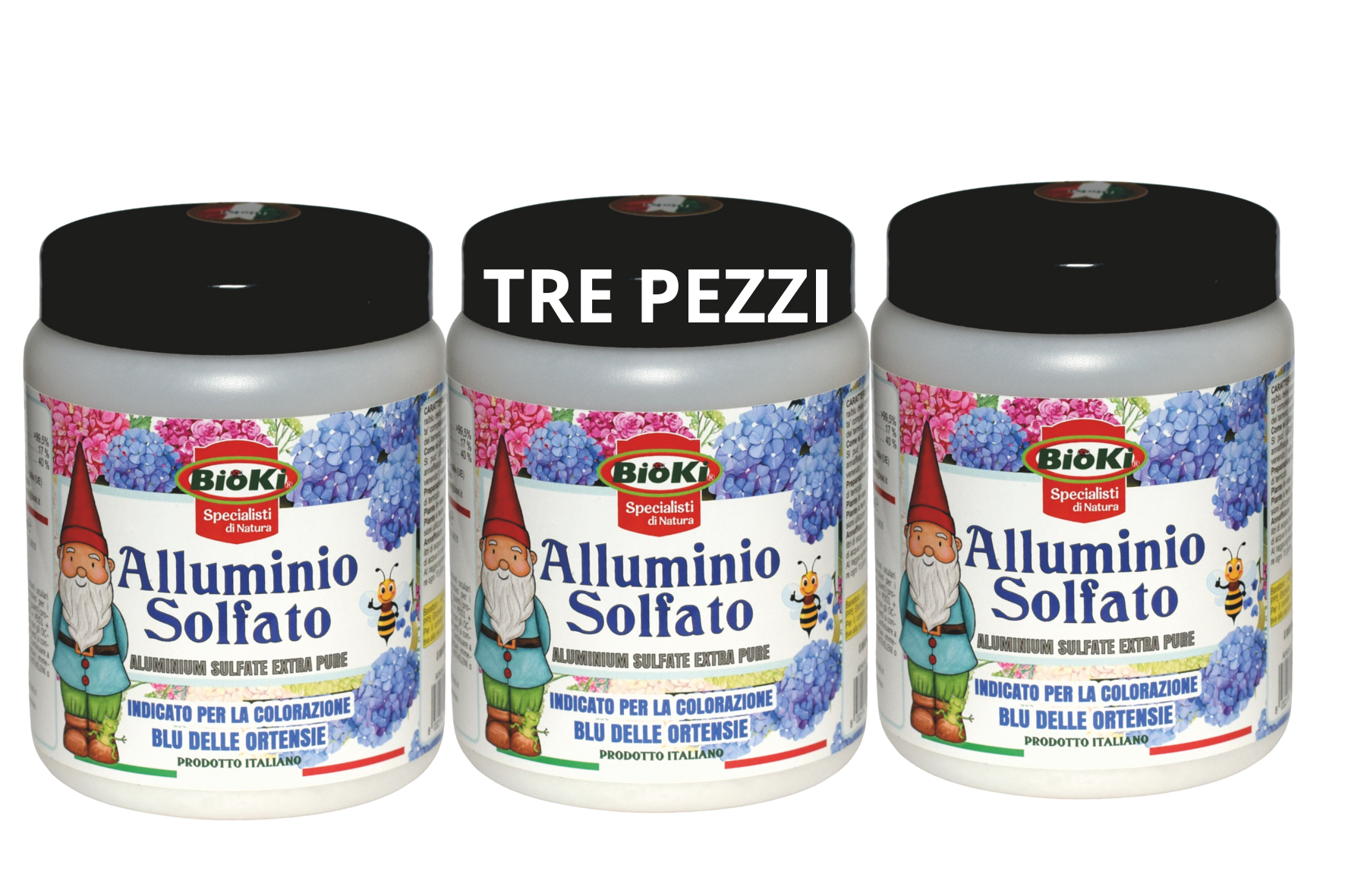 - KIT a prezzo offerta composto da n. 3 barattoli da 500 g di alluminio solfato specifico per la colorazione azzurra delle ortensie, per utale di 1,500 kg